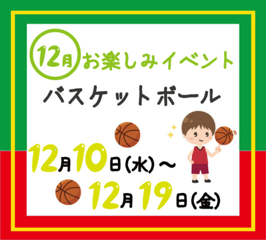 ☆12月のお楽しみイベント☆『バスケットボール🏀でシュートゲーム♪』何ゴール決められるかチャレンジ!!普通のバスケットボールとは違ってポンポン弾むやわらかゴムボールです✨お子様も楽しくチャレンジできますよ(*^^*...